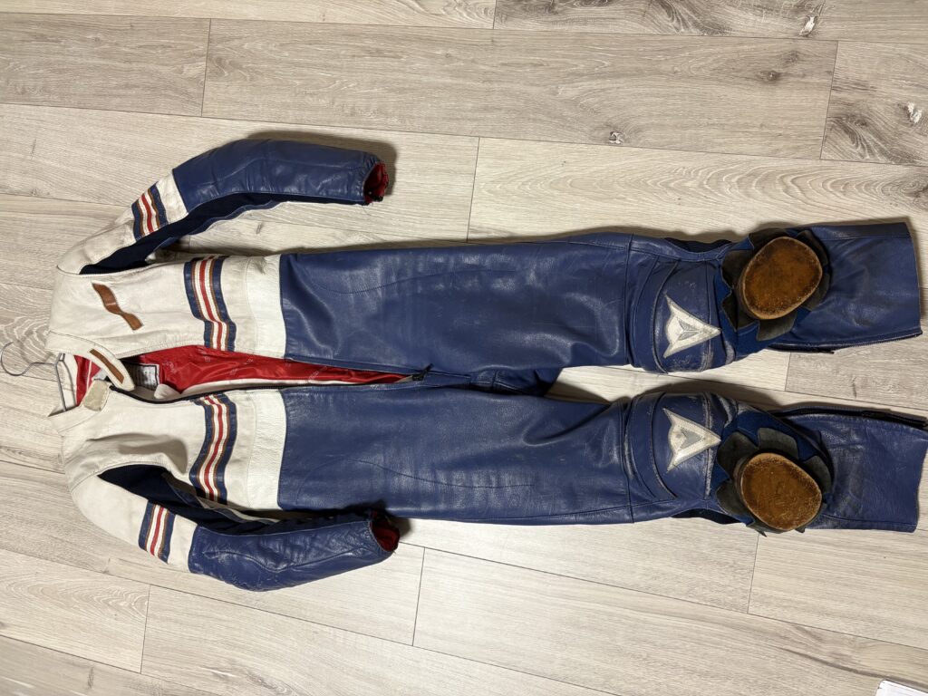 今のツナギは空力?を考えた背中の“コブ”が定番。転倒しても無いよりも安全っぽい